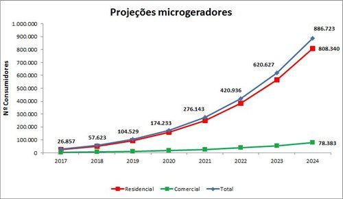 Em termos da potência, a projeção foi reduzida para 3.209 MW. Os cálculos foram efetuados somente para a faixa de microgeração, que abrange residências e pequeno comércio, não para minigeração, com porte para atender indústria e empresas maiores.