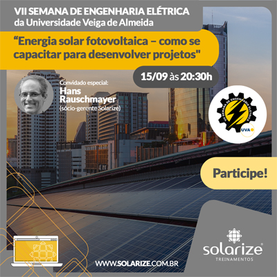 Sempre bom estar em contato com os estudantes e, desta vez, o tema oferecido será “Energia solar fotovoltaica – como se capacitar para desenvolver projetos".
