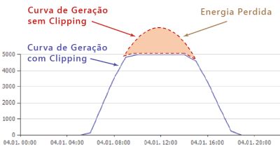 Primeiro, precisamos entender como o inversor reage quando a potência fotovoltaica na sua entrada excede sua capacidade de trabalho e ele precisa ativar sua proteção interna (efeito clipping).